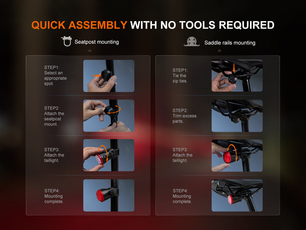The Fenix BC06R Smart-Brake Bicycle Taillight is a high-performance safety light designed for cyclists who value visibility and convenience. Featuring smart brake sensing, it instantly boosts brightness to a 90-lumen burst when braking, alerting others up to 100 meters away. With versatile mounting options for seatposts (25.4-31.6mm) and saddle rails (39-50mm), it fits most bikes with ease. The light offers a 270° lighting angle, multiple modes (including flashing and spinning light modes), and an impressive 24.5-hour runtime. It fully charges in just 2 hours via USB Type-C and boasts IP66 waterproofing, making it durable for all-weather riding.