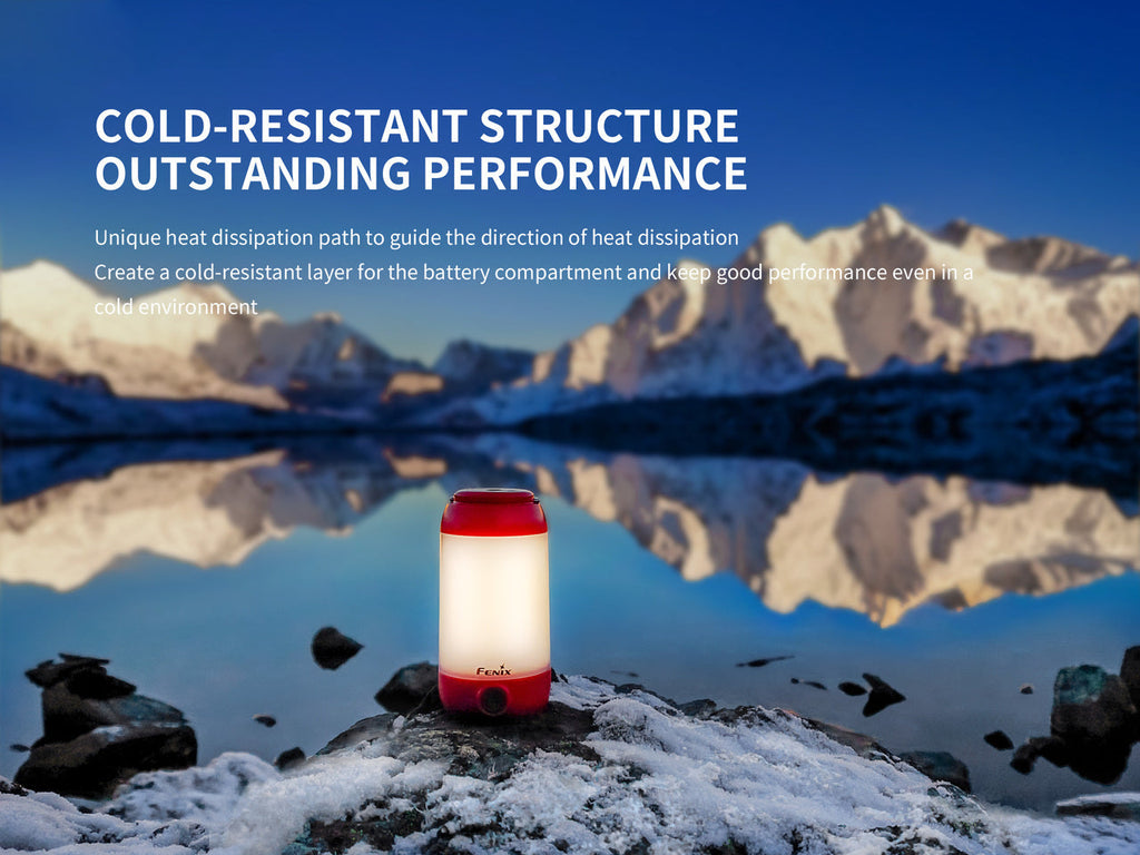 The CL26R camping lantern is here to light up your outdoor life. This small but mighty lantern packs 400 lumens of power with a 240-hour runtime on low. At max output, it runs for up to 5 hours with a beam distance of 82 feet. It's powered by a 2600 mAh 18650 rechargeable battery (included) or is compatible with two CR123 batteries (not included). The top of the lamp is magnetic, allowing you to hang it from any metal surface with ease. Its one-switch control makes it a cinch to turn on and access the 6 white and 2 red output levels. Choose from Red, Green, or Black - the CL26R is a must-have for any outdoors enthusiast!