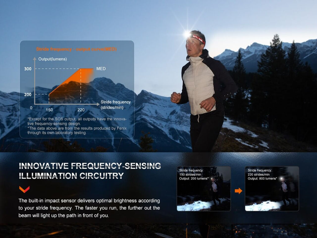The lightweight HL32R-T Trail Running headlamp boasts 800 lumens from two spot and flood light LEDs with a 30% lighter magnesium body. It's powered by a rechargeable 1900mAh battery (included) or AAA batteries (not included), and has a USB Type C charging port, ensuring a quick 3-hour recharge. It offers up to 20 hours runtime and the smart stride sensor adjusts the brightness to match your running speed. Additionally, an SOS mode and reflective headband provide assistance should you need it. A perforated headband allows airflow and sweat evaporation for cooling, and the SPORT headband fit system allows for customized fit with just a twist. You can rest easy with the lockout function, plus the IP66 waterproofing, 2- meter drop and -31° to 113° fahrenheit operation ensures a durable, reliable headlamp for your trail runs.