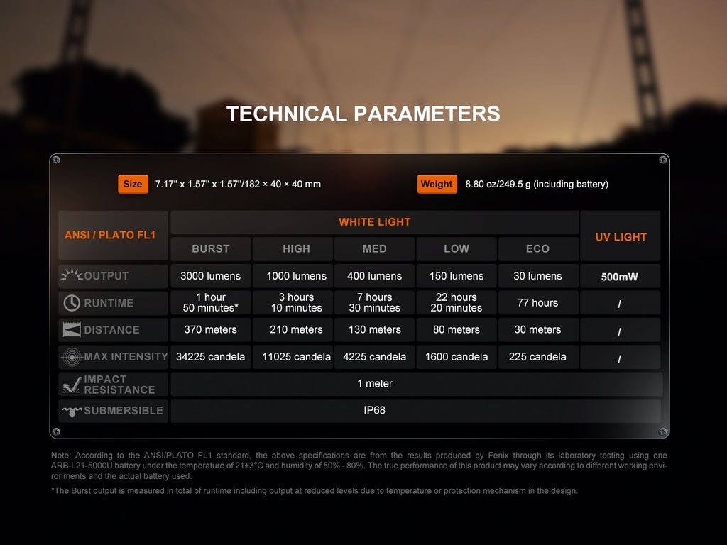 The Fenix WF25RM sets a new standard for duty lights with its cutting-edge design and versatile features, making it a top choice for professionals in specialized operations. This powerhouse delivers an astonishing 3000 lumens of white light, reaching over 1200 feet, while also offering a 365nm UV light with 500 mW of power which is ideal for tasks like non-destructive testing and leak detection.
